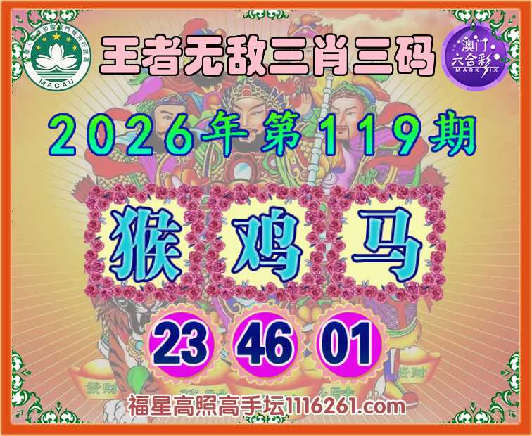 119期:【王者无敌】 🍀三肖三码🍀【猴鸡马】【23.46.01】开:00准