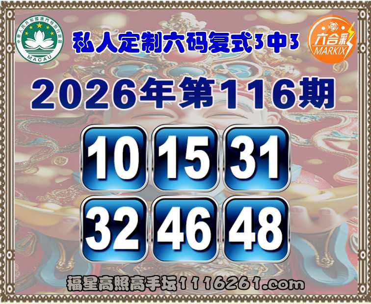 116期: ♥️『私人定制』 ♥️六码复式3中3♥️