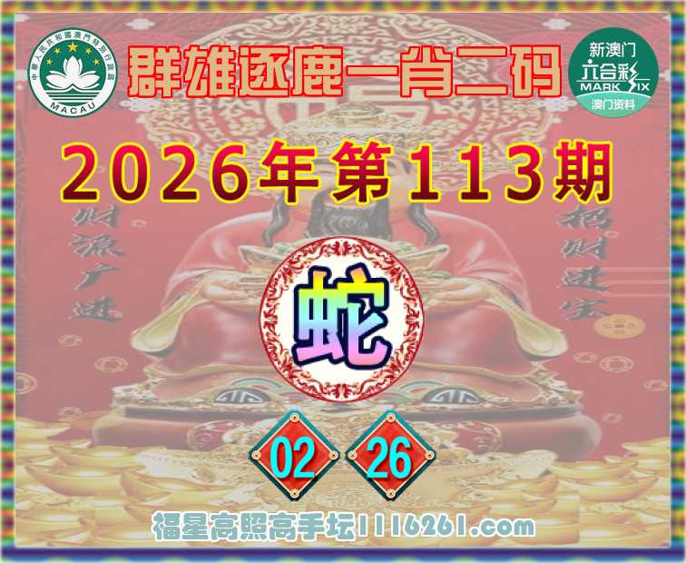 113期: 👛『群雄逐鹿』 👛一肖二码👛【】【02.26】开:蛇02