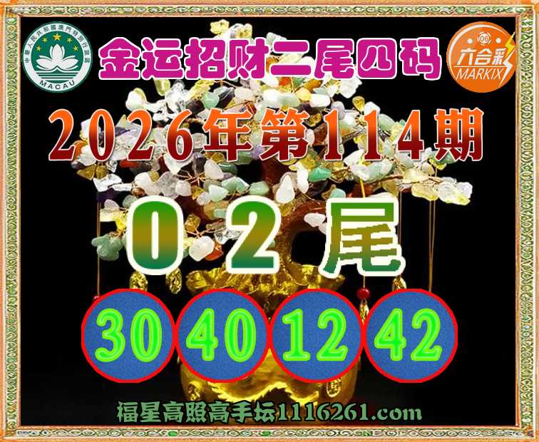 114期: 👚『金运招财』 👚二尾四码👚【02尾主:30.40.12.42】开:30