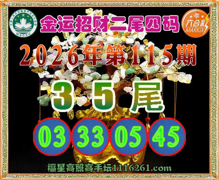 115期: 👚『金运招财』 👚二尾四码👚【35尾主:03.33.05.45】开:04