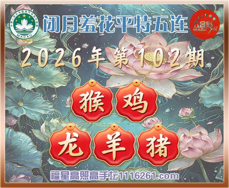 102期:【闭月羞花】 🧩平特五连🧩【猴鸡龙羊猪】开:猴47,鸡46,龙03,羊36,猪20