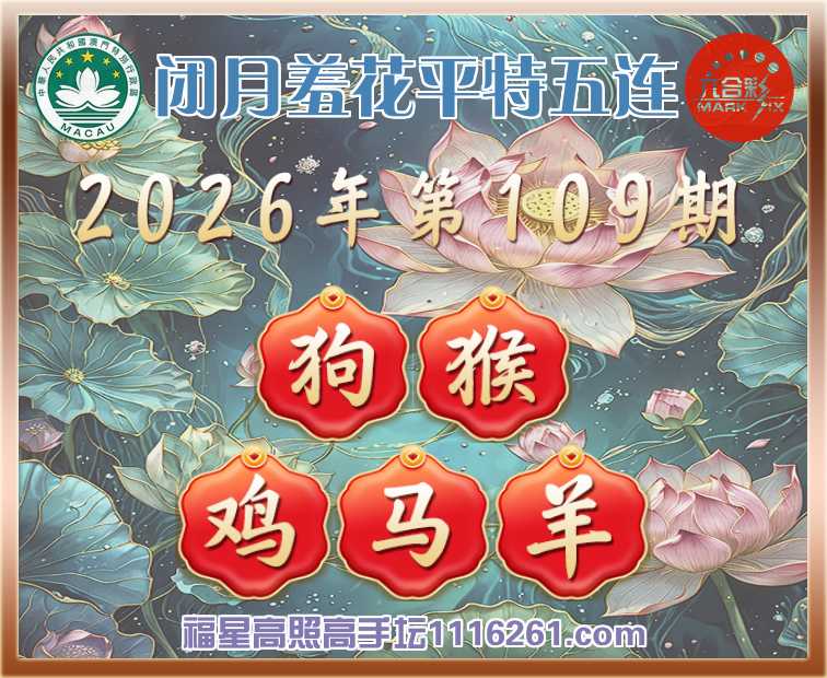 109期:【闭月羞花】 🧩平特五连🧩【狗猴鸡马羊】开:00