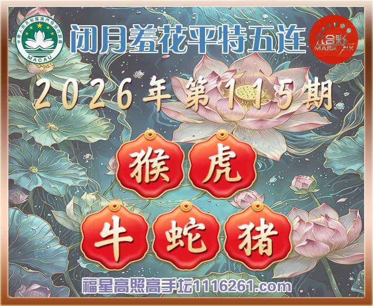 115期:【闭月羞花】 🧩平特五连🧩【猴虎牛蛇猪】开:00