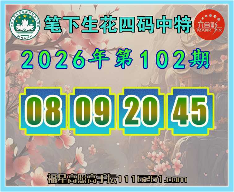 102期:【笔下生花】 👚四码中特👚【08.09.20.45】开:20