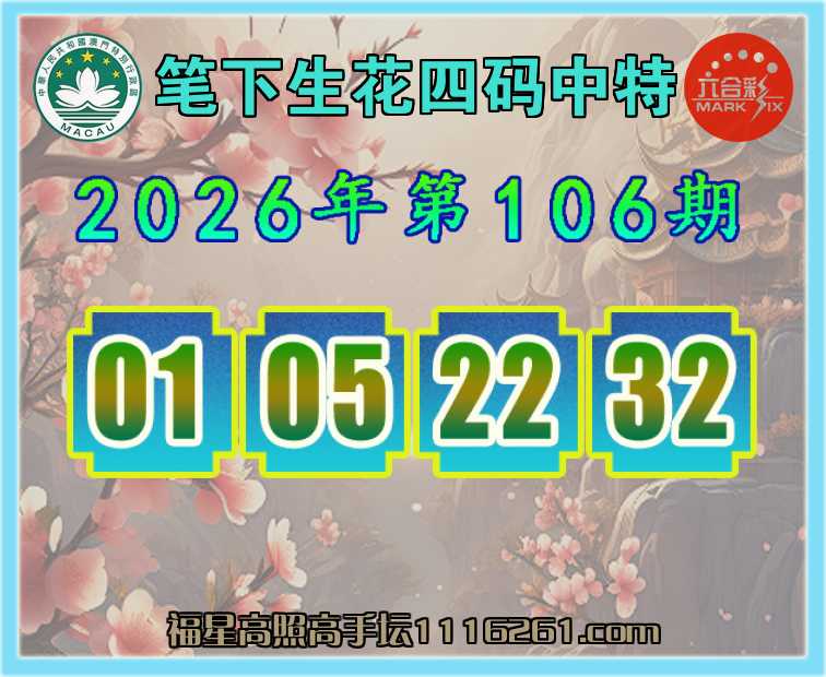 106期:【笔下生花】 👚四码中特👚【01.05.22.32】开:22