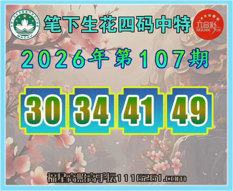 107期:【笔下生花】 👚四码中特👚【30.34.41.49】开:49