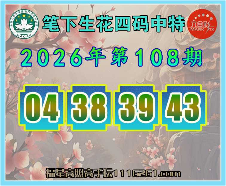 108期:【笔下生花】 👚四码中特👚【04.38.39.43】开:45