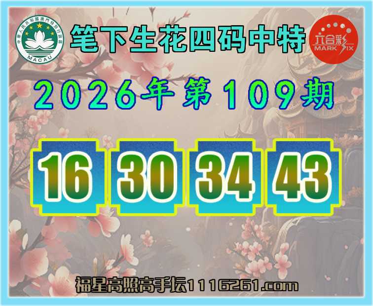 109期:【笔下生花】 👚四码中特👚【16.30.34.43】开:16