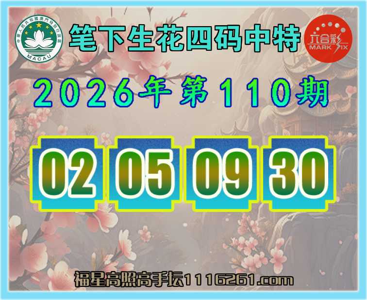 110期:【笔下生花】 👚四码中特👚【02.05.09.30】开:30