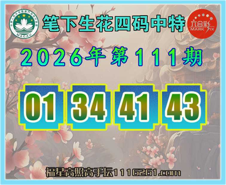 111期:【笔下生花】 👚四码中特👚【01.34.41.43】开:01