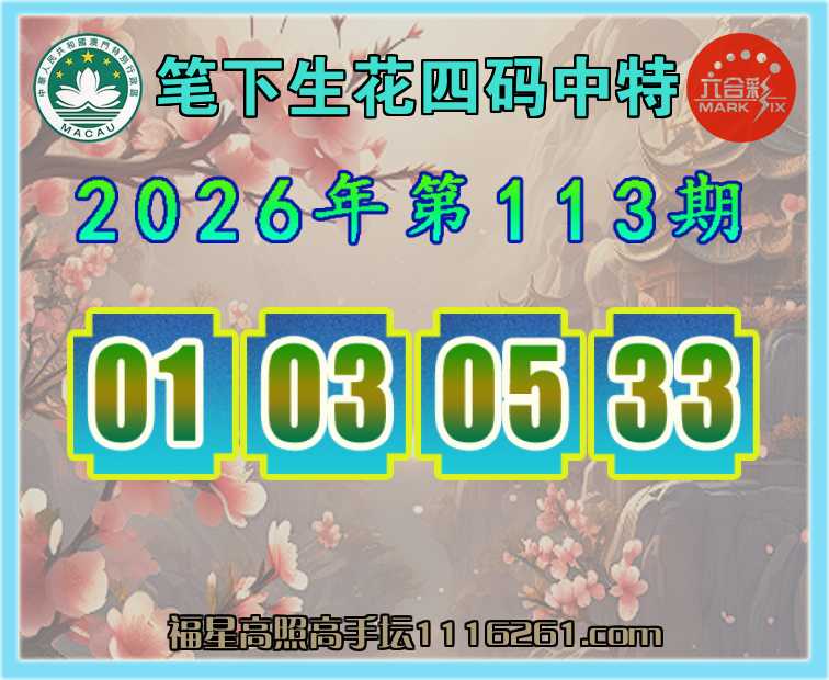 113期:【笔下生花】 👚四码中特👚【01.03.05.33】开:02