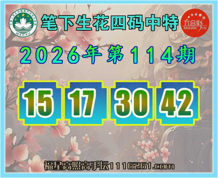 114期:【笔下生花】 👚四码中特👚【15.17.30.42】开:30