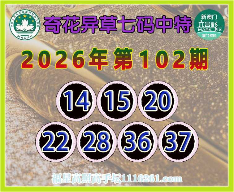 102期:【奇花异草】 👉七码中特👉【14.15.20.22.28.36.37】开:20