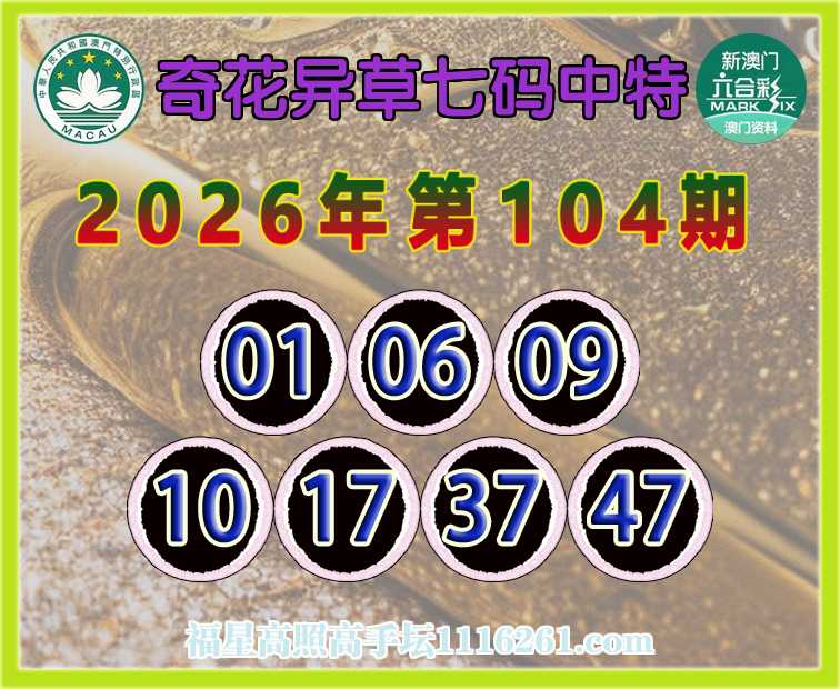 104期:【奇花异草】 👉七码中特👉【01.06.09.10.17.37.47】开:01