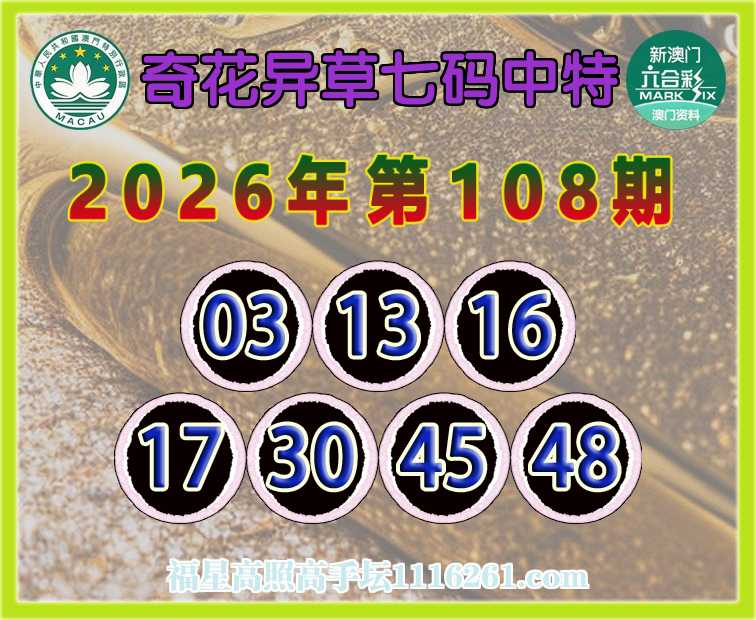 108期:【奇花异草】 👉七码中特👉【03.13.16.17.30.45.48】开:45