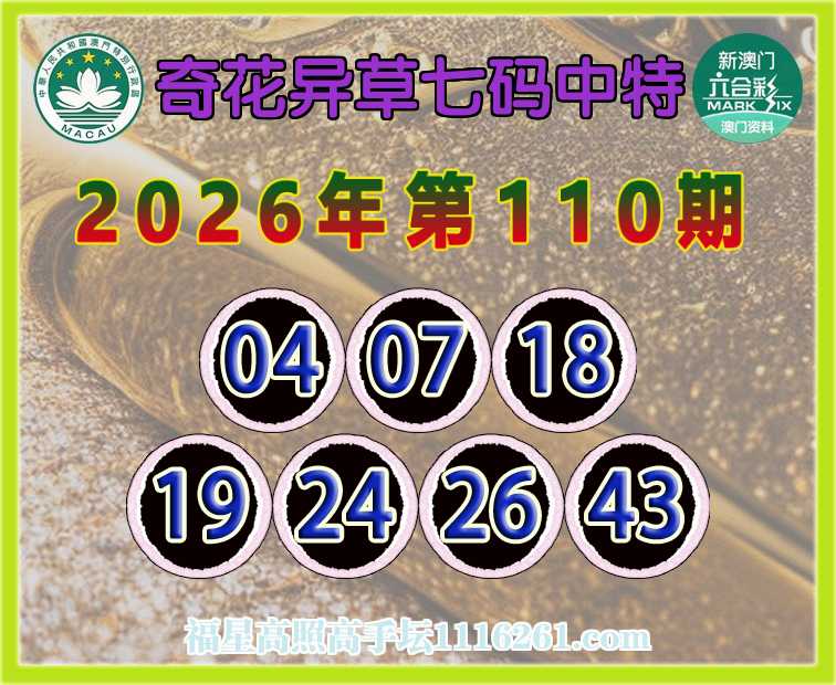 110期:【奇花异草】 👉七码中特👉【04.07.18.19.24.26.43】开:30