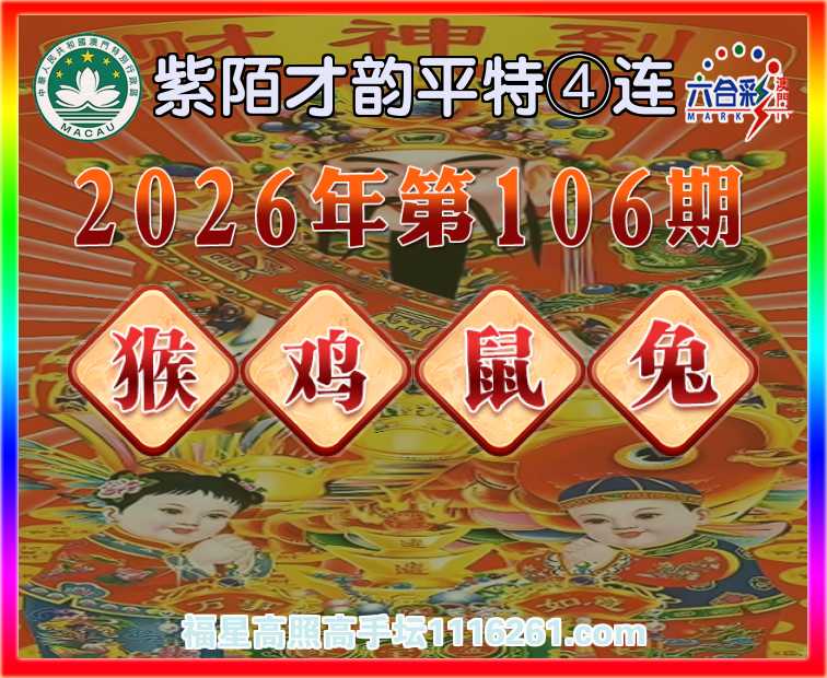 106期:《紫陌才韵》 📸平特④连📸【猴鸡鼠兔】开:猴11,鸡22,鼠31,兔40
