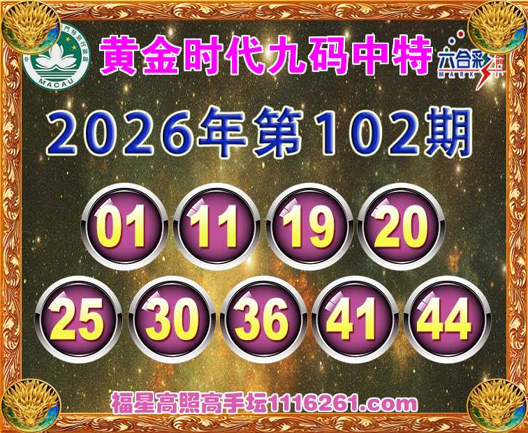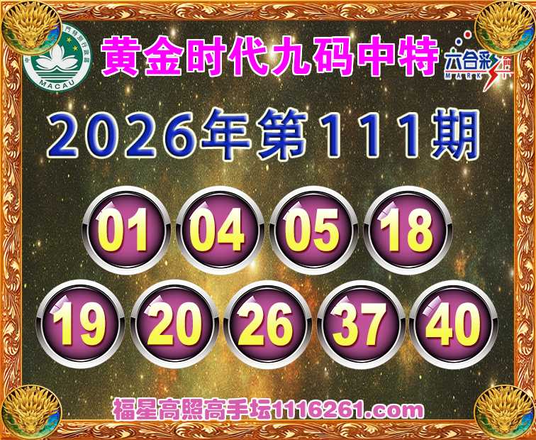 111期:〖黄金时代〗 ☘️九码中特☘️开:01