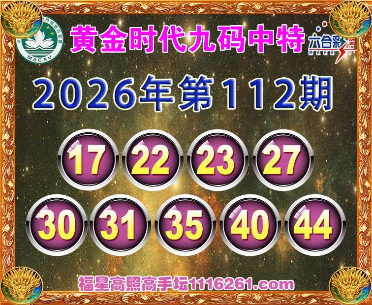112期:〖黄金时代〗 ☘️九码中特☘️开:09
