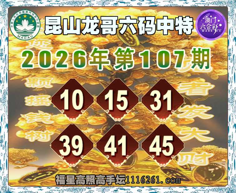 107期:《昆山龙哥》 🥠六码中特🥠【10.15.31.39.41.45】开:49