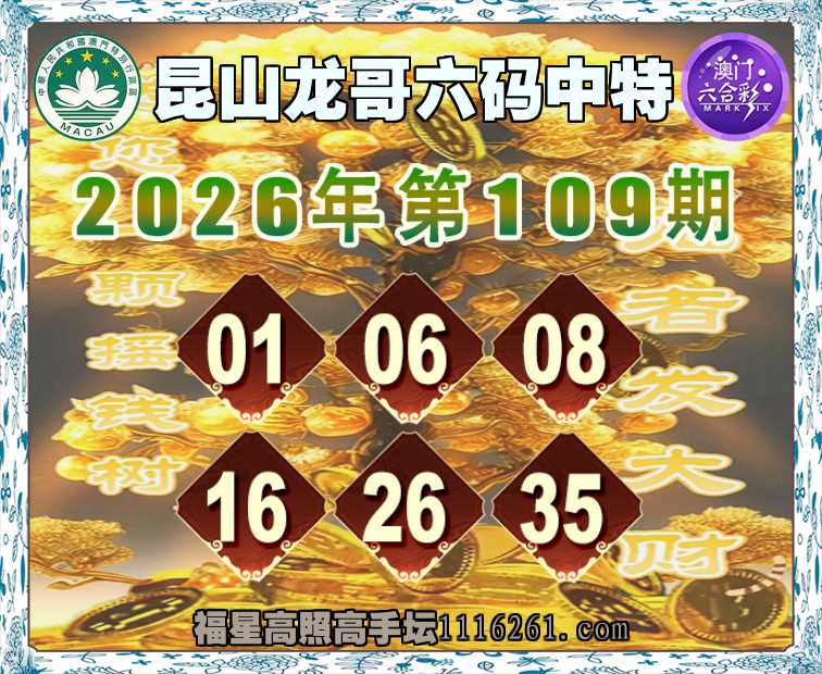 109期:《昆山龙哥》 🥠六码中特🥠【01.06.08.16.26.35】开:16