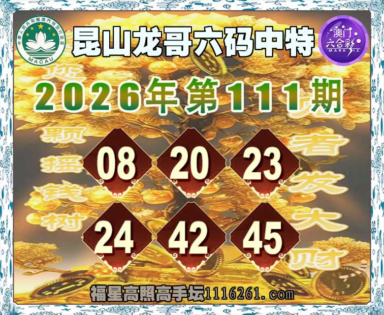 111期:《昆山龙哥》 🥠六码中特🥠【08.20.23.24.42.45】开:01