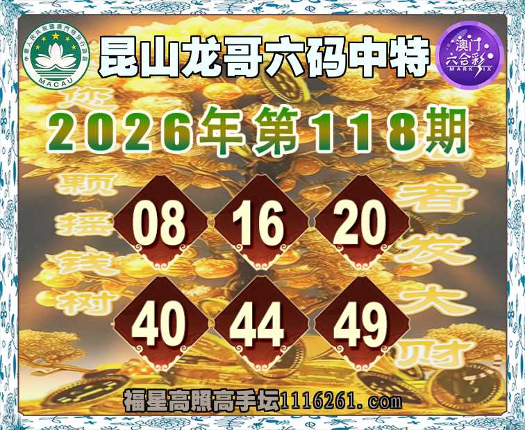 118期:《昆山龙哥》 🥠六码中特🥠【08.16.20.40.44.49】开:08准上榜资料