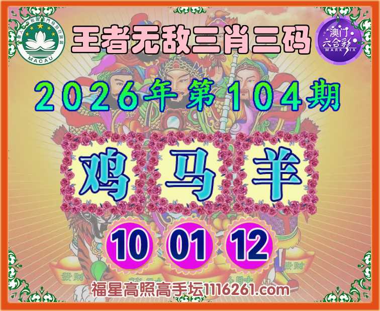 104期:【王者无敌】 🍀三肖三码🍀【鸡羊】【10.01.12】开:马01