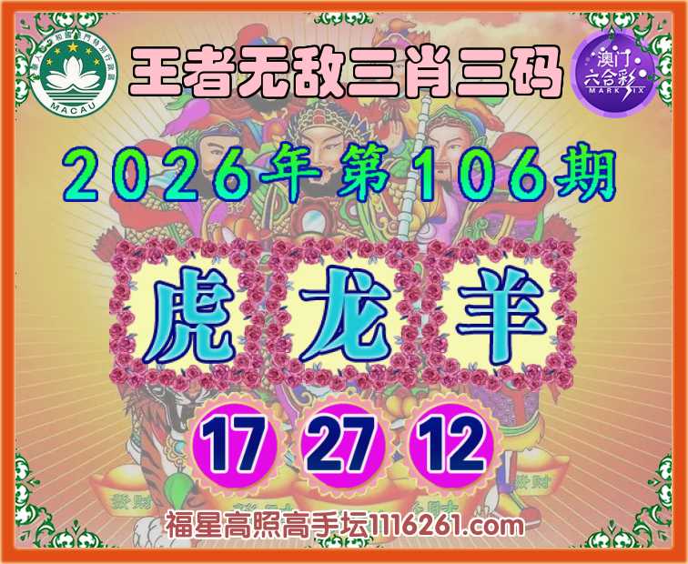106期:【王者无敌】 🍀三肖三码🍀【虎龙羊】【17.27.12】开:鸡22